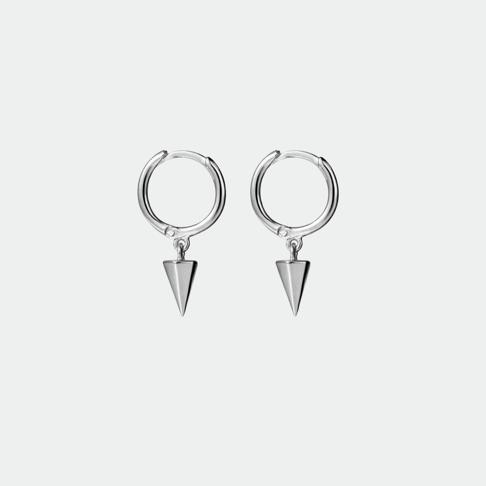 Silver hoops with a cone-shaped pendant.