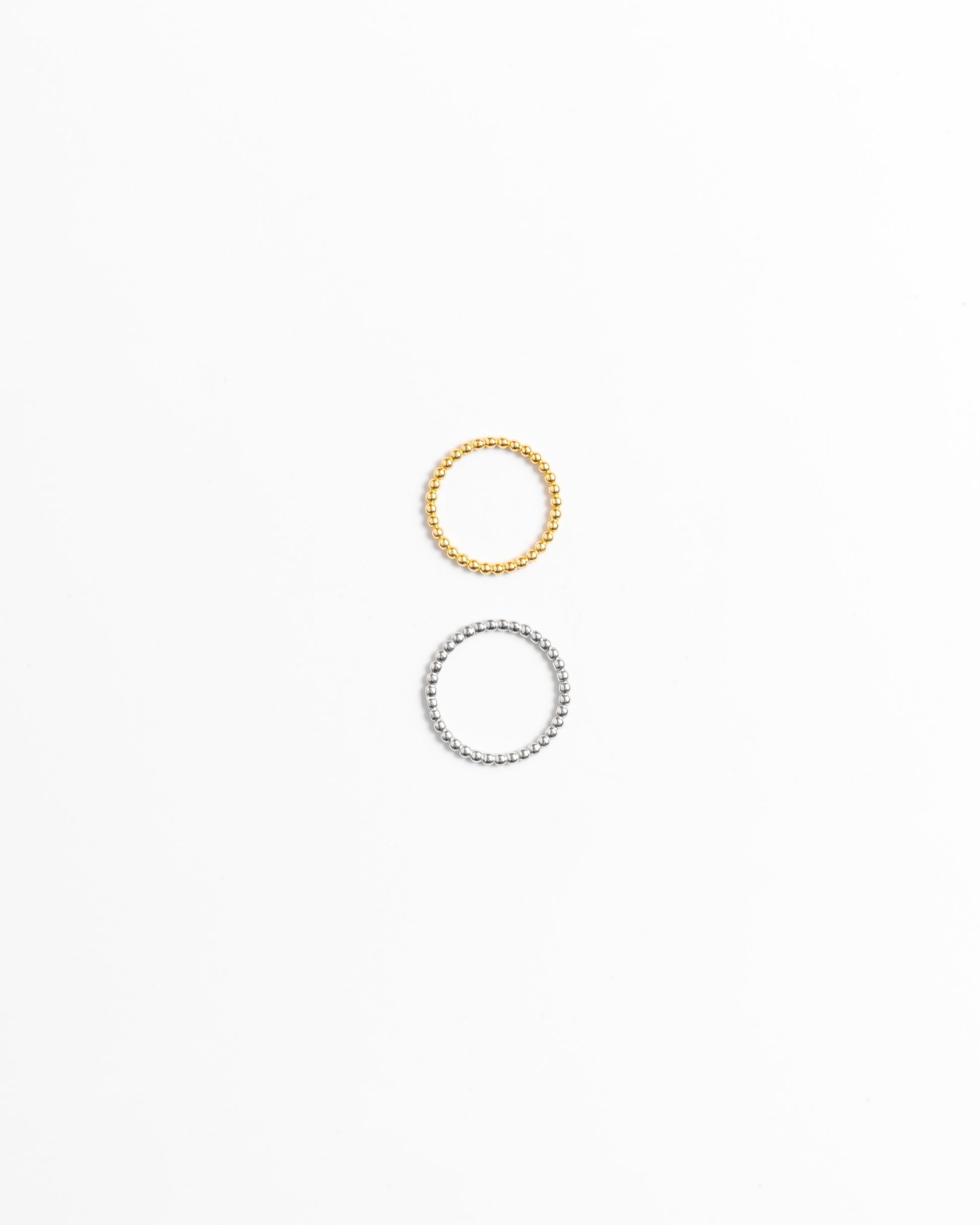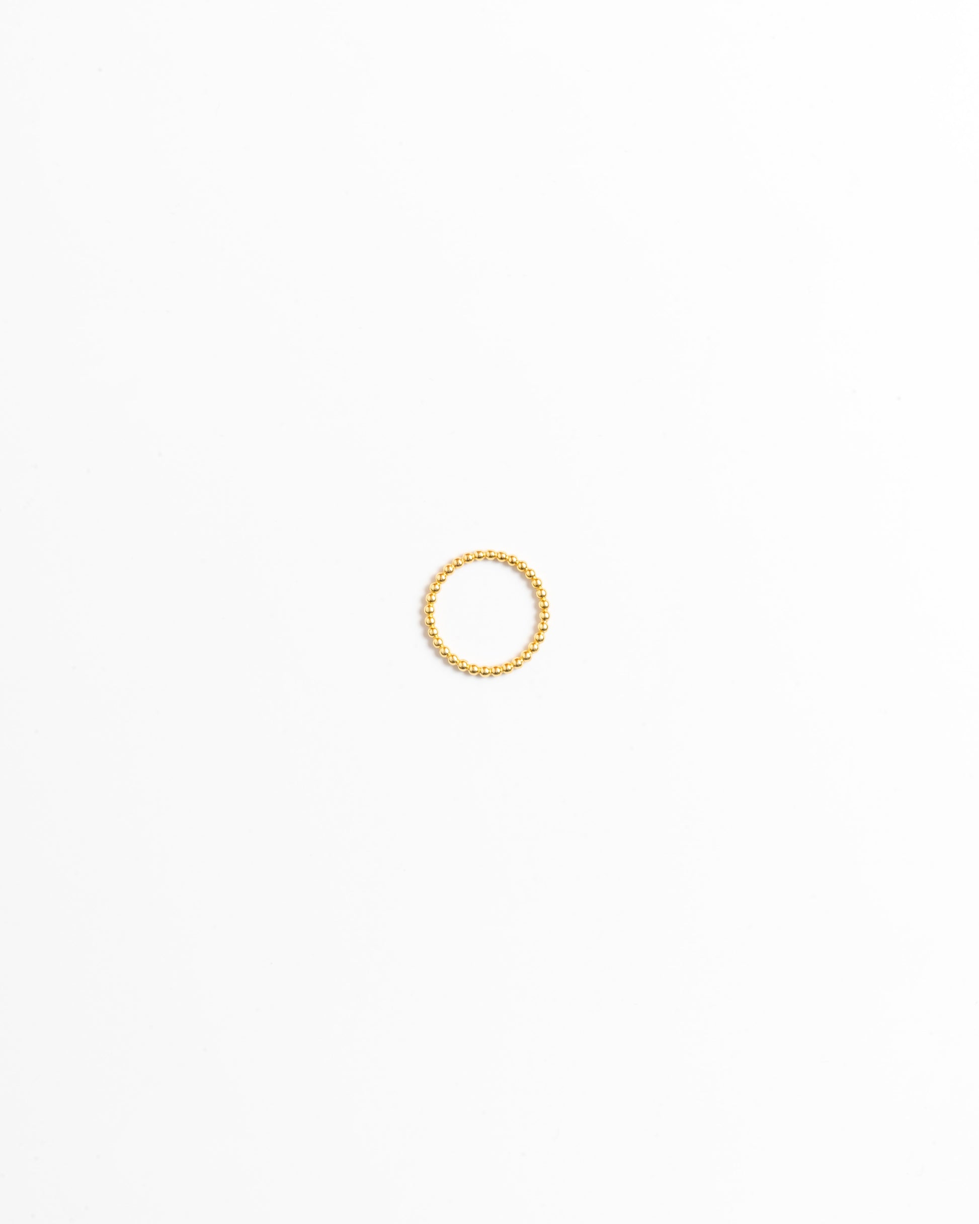 Anillo fino con pequeñas bolitas en todo el contorno.