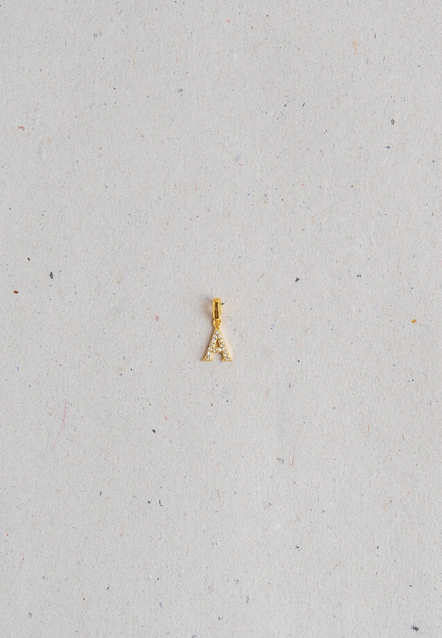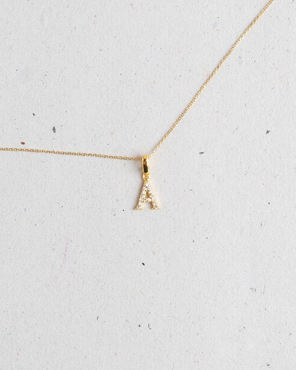 Charm con forma de letra, disponible en todas las iniciales. Base dorada con circonitas incrustadas.