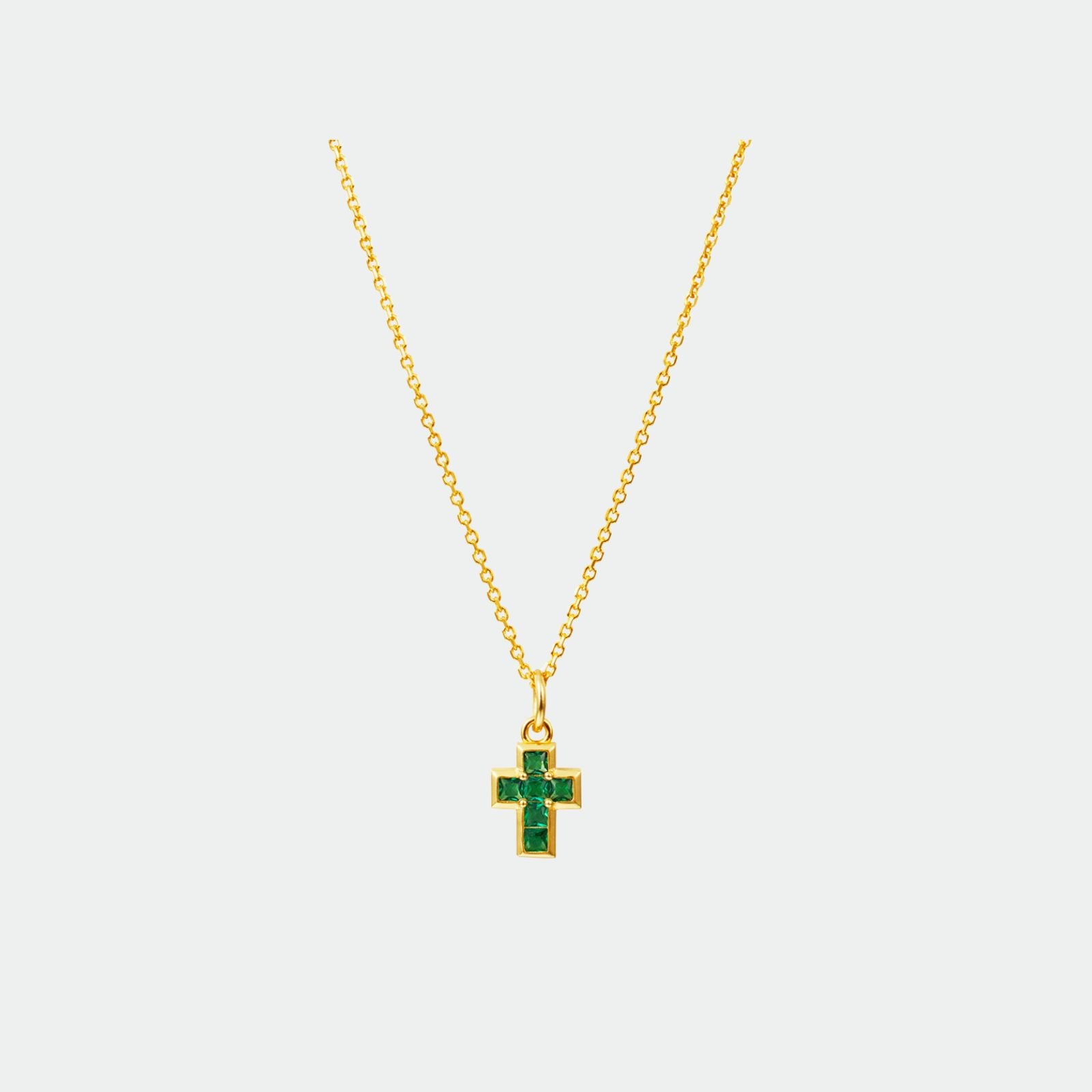 Incluye cruz central con circonitas brillantes. Diseño delicado con presencia.