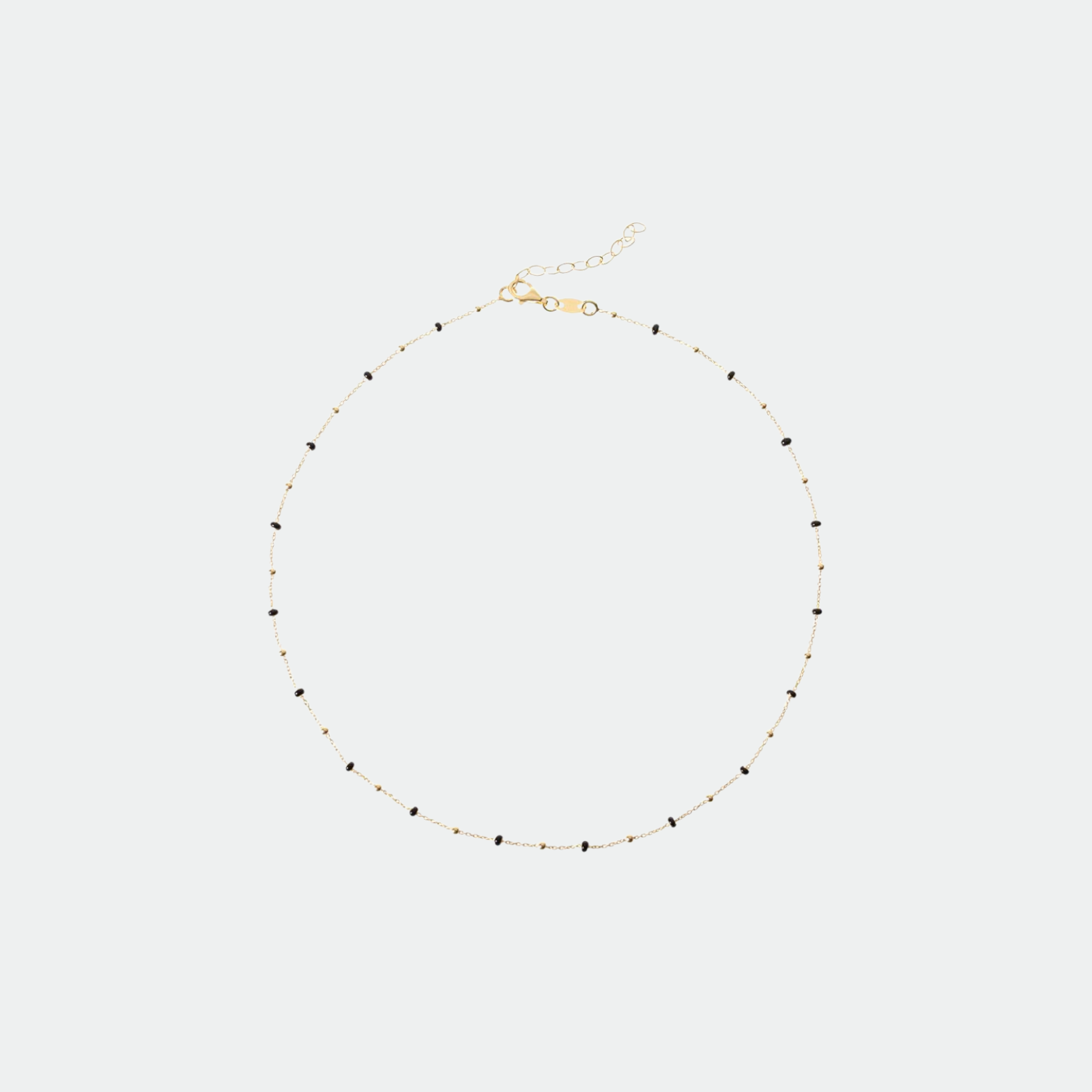 Cadena de plata chapada en oro con bolitas doradas y esmaltadas.
