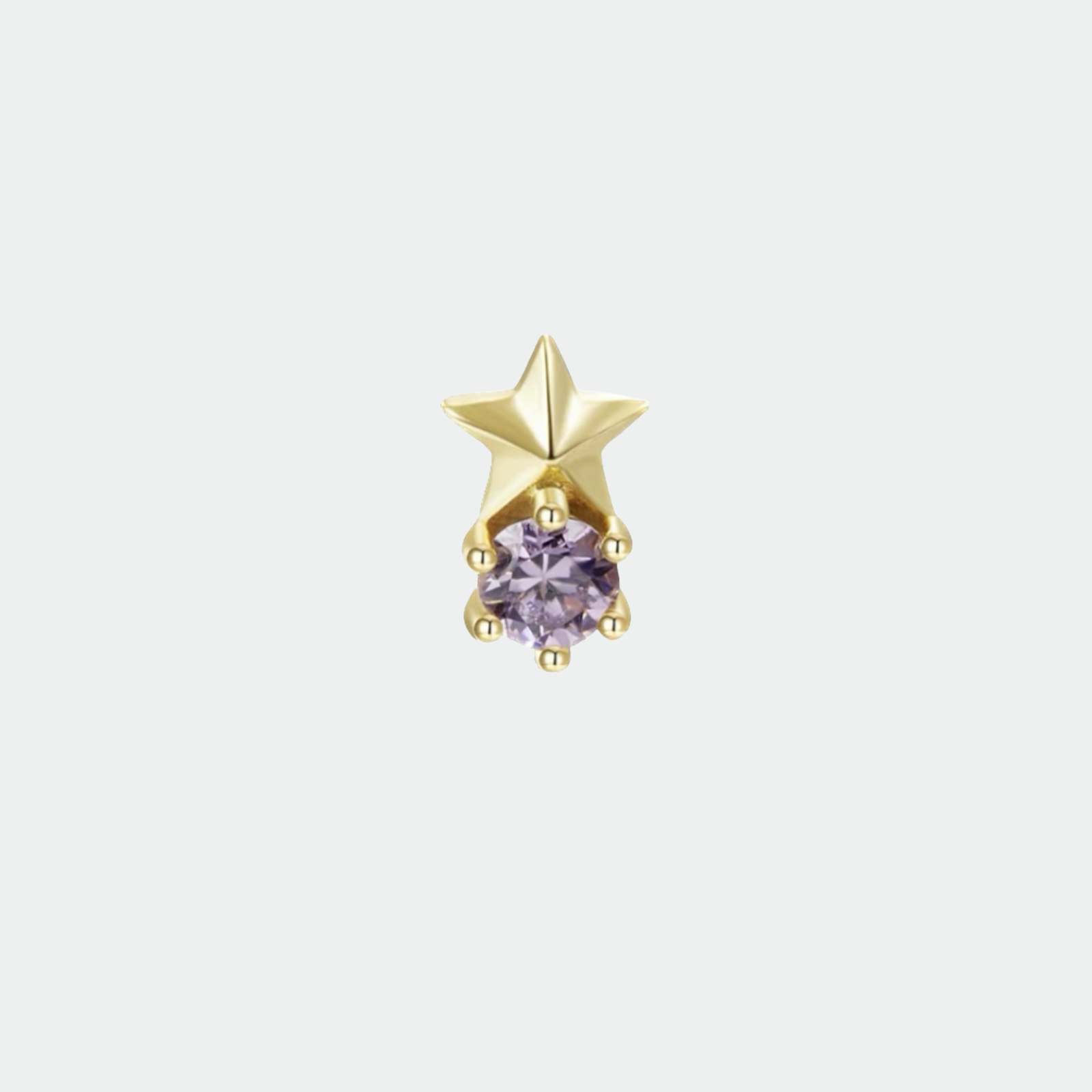 Pendientes pequeños en forma de estrella, con circonita lila o negra.