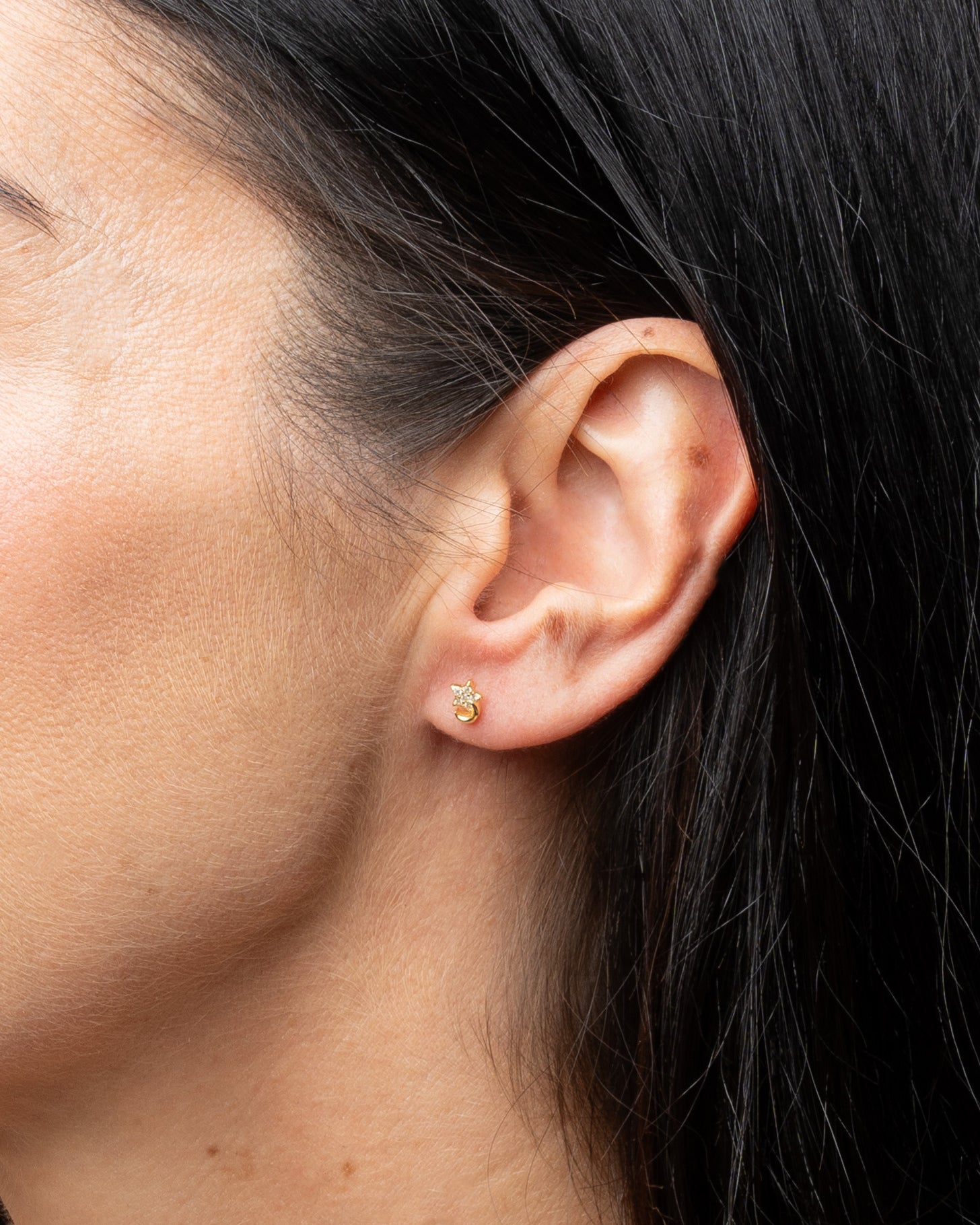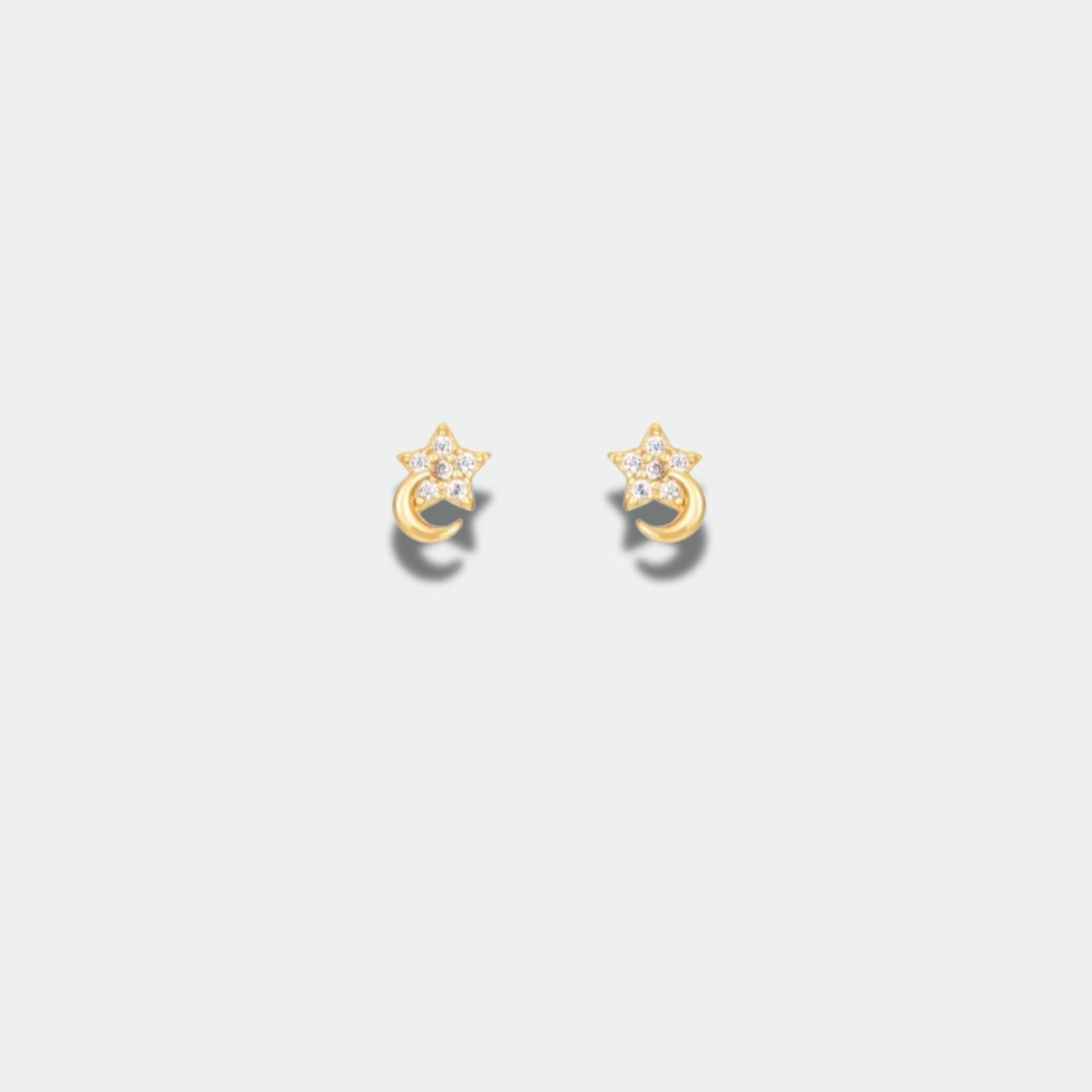 Pendientes con doble diseño: una estrella de circonita y una luna lisa.
