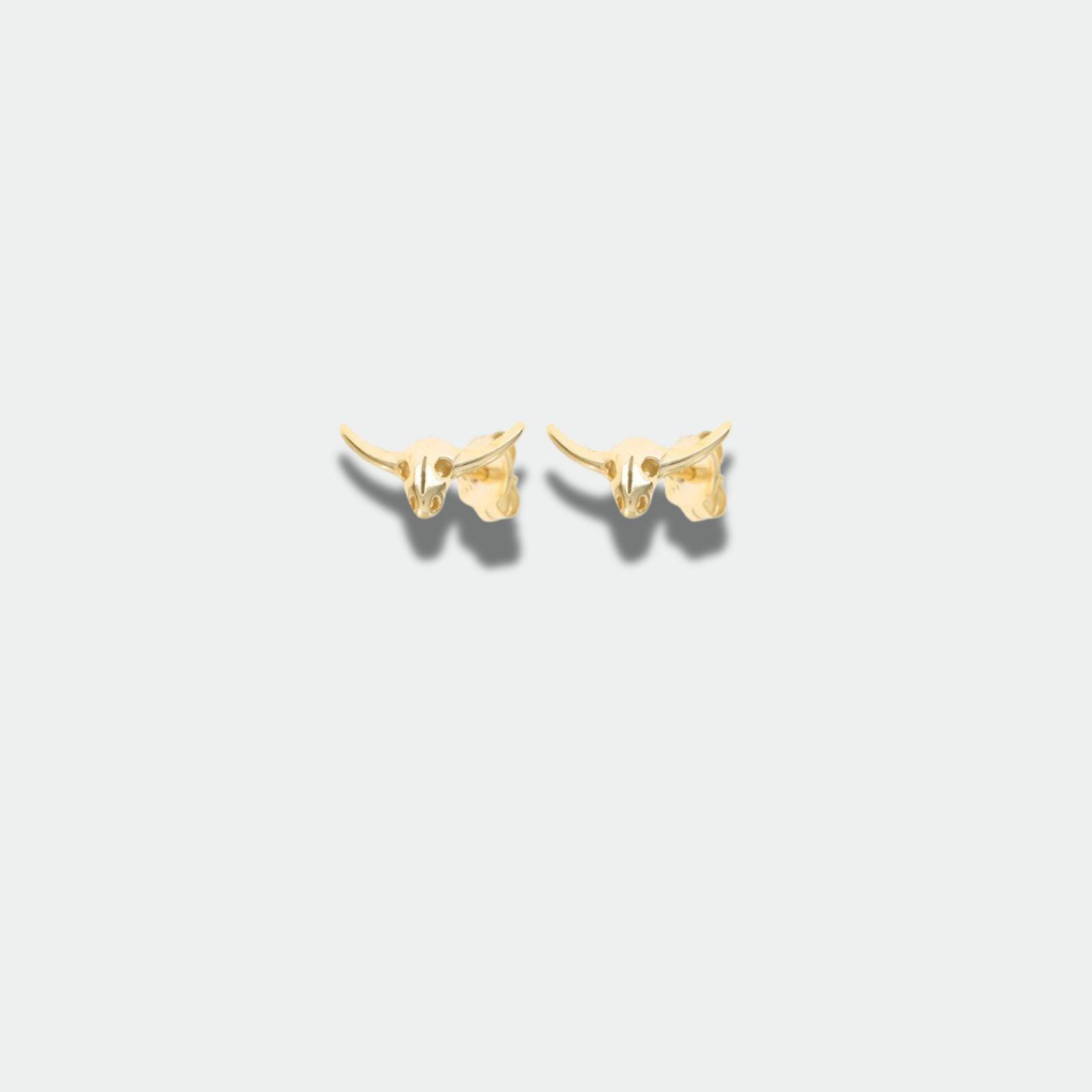 Pendientes pequeños en forma de cabeza de toro, en plata de ley bañada en oro.