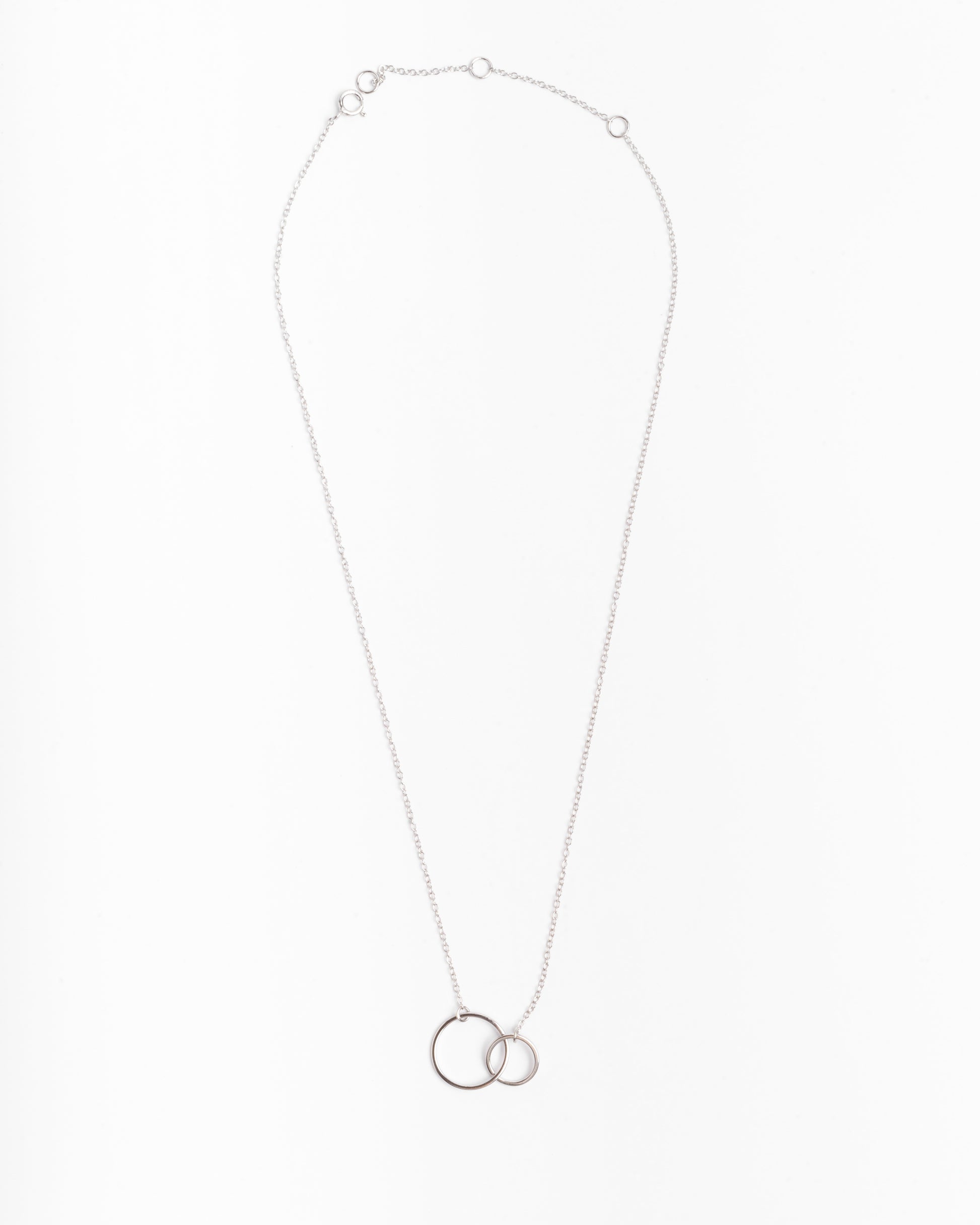 Cadena fina de plata chapada en oro con dos círculos entrelazados.